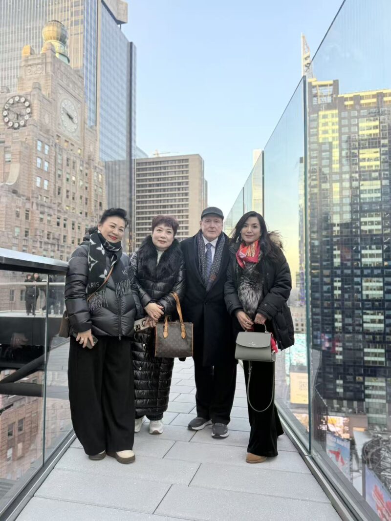 參觀期間,嘉賓們在百米高空俯瞰有著「世界十字路口」之稱的時報廣場,並合影留念,記錄下這一珍貴的時刻。隨著2026年腳步的臨近,這顆承載著江錦鑫會長、陳鍵榕總裁及眾多僑領美好祝福的「星座球」,將在12月31日午夜正式落下,向世界綻放屬於它的無限光芒。