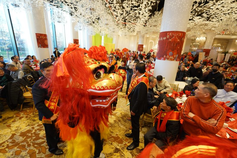 一直以来,泮野儿女秉承勤奋进取、敢为人先的优良传统。改革开放以来,众多乡亲远赴海外,尤其是旅美乡亲,凭借坚韧不拔的精神和卓越的才干,在商界、学界及科技领域不断开拓进取,成绩斐然。他们不仅在异国他乡立足发展,也以实际行动回馈社会、反哺家乡,成为弘扬“泮野精神”的生动写照。当晚庆典在喜庆热烈的氛围中拉开帷幕。由泮野乡亲旗手领衔开道,舞狮队带头入场,队伍井然有序。随后,四林宗亲和塘屿家兄及泮野乡亲依次入席,并按照“述、道、立、丕、常、允”等字辈顺序进场,彰显出深厚的宗族礼序与传统文化底蕴。