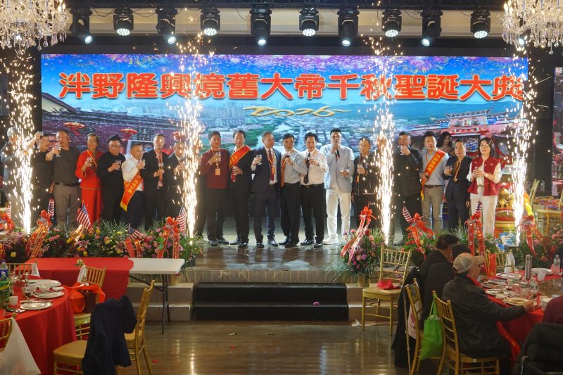 最后,全体旅美泮野理事登台举杯,向在场嘉宾敬酒祝福,祝愿大家在美生活平安顺遂、事业兴旺、财源广进。整场庆典在温馨动人的《明天会更好》歌声中圆满落幕。此次隆兴境旧大帝千秋神诞庆典不仅是一场庄严隆重的民俗盛典,更是一场凝聚乡情、传承文化的重要活动。它不仅展现了旅美泮野乡亲血脉相连、守望相助的深厚情谊,也彰显了中华优秀传统文化在海外薪火相传、生生不息的蓬勃活力。