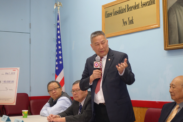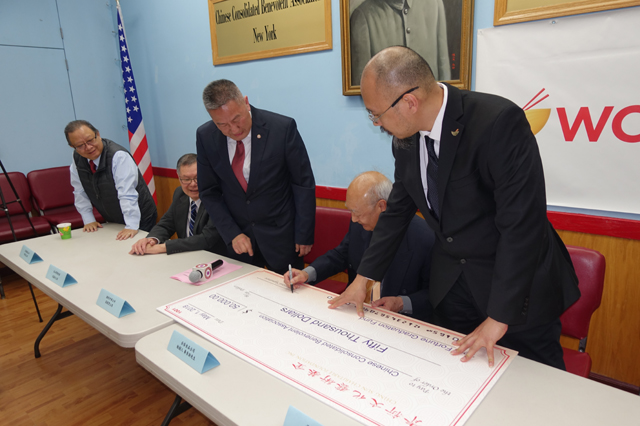 【資料來源:紐約僑報網 僑報記者陳辰5月1日紐約報導】為傳承中華文化,推動中文學習,青新文化藝術基金會1日於華埠舉行記者會,宣布向中華公所捐款5萬元成立“畢業鼓勵獎學金”。中華公所主席伍銳賢表示,獎學金將化為華人學童夢想翅膀,讓他們在成功未來展翅翱翔。
