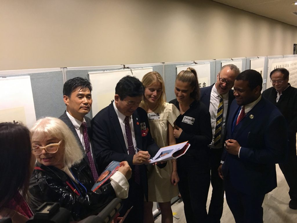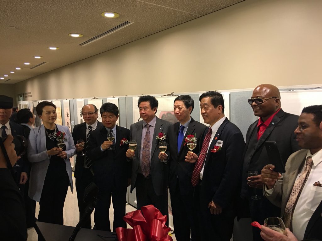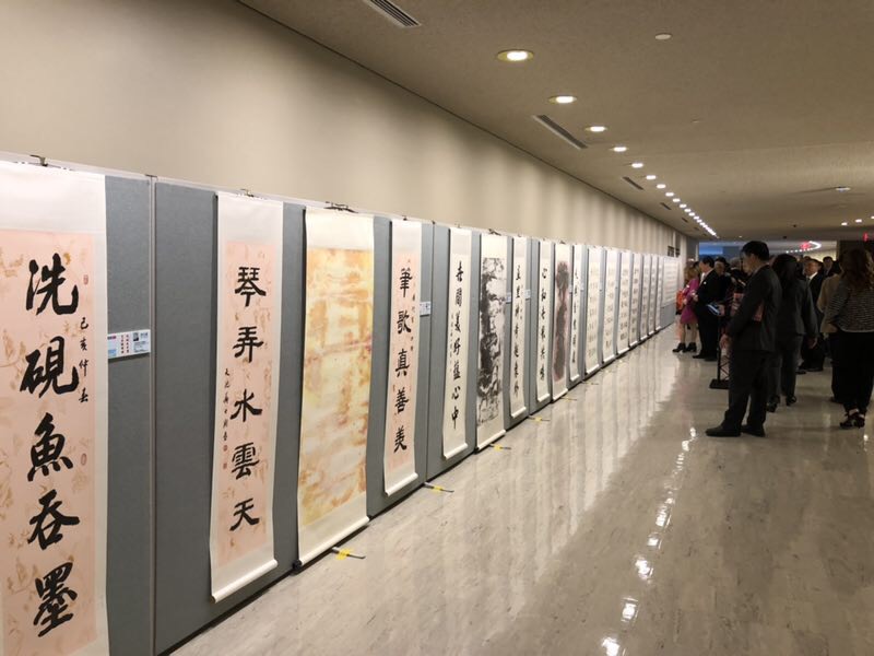 【中国侨声网记者李兆银纽约报道】4月24日,联合国2019中文日庆祝活动的一部分,由联合国中国书会、中国文联国际联络部、中国书法家协会等组织在联合国总部联合举办的“苏士澍、王林旭书画展”在联合国总部大厅隆重开幕。此次展览共展出两位书画数10幅代表作品。出席开幕式嘉宾有中国常驻联合国副代表吴海涛大使、联合国大会和会议管理部规划与协调司司长马雪松、中国驻纽约总领馆文化参赞李立言、康涅狄格州德比市市长Ricard Dziekan、托尔投资公司首席执行官及特朗普总统私人顾问和前纽约邮报董事长斯蒂芬·霍芬博格、联合国中国书会会长稽晓薇、联合国赴华项目负责人何勇、美国中国文化艺术基金会主席朱瑞凯、加拿大大不列颠哥伦比亚儿童基金会会长戴杰义、美国中国书法家协会主席李兆银、美国国际艺术联合会主席郑泉财,诗悟国际艺术研究院院长林志忠以及纽约书法家黄春云、陈伟区、林金泉、张小琳等人士。