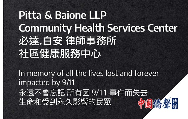 必达.白安 律师事务所 与社区服务机构一起永远不会忘记 所有因9/11事件而失去生命的民众,並会继续为受到永久影响的民众争取福利。