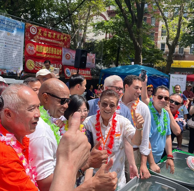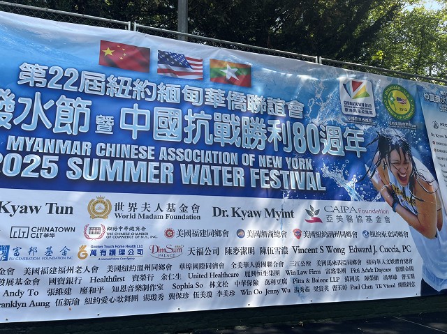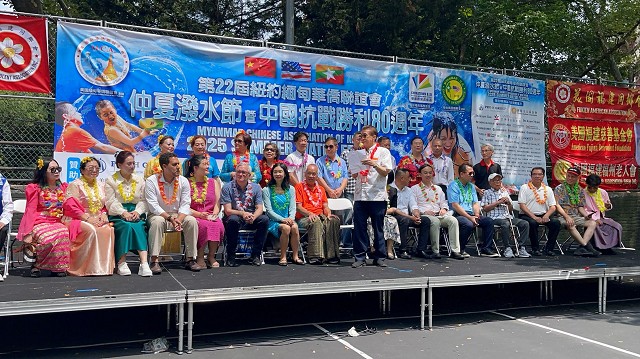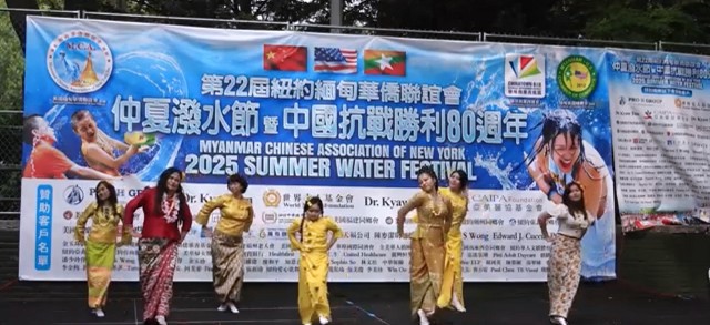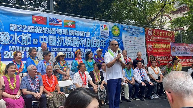 “雁影留声”报道 由纽约缅甸华侨联谊会主办的第22 届仲夏泼水节暨中国抗战胜利80周年纪念活动圆满成功举办!现场气氛欢乐热闹,吸引了大批民众以及多位民选官员和数十位社区侨领官共襄盛举,最令人振奋的是纽约市长Eric Adam也亲临现场致词祝贺,还有中国驻纽约领馆的副总领事孙丽萍、领侨处主任潘焱、领事荣顶,纽约市议员庄文怡、马泰等一起参与这项有意义的活动,大家互相泼水,最重要的是这个节日也象征着洗去一切的霉运,冲走烦恼,以全新的姿态迎接新的一年。大会主席苏焕光说到,今年3月28号,缅甸发生了7.9级的强震,大家慷慨解囊总共筹得了善款七万美元来帮助灾区灾民度过难关,非常感谢大家的善举;今年正值中国抗战胜利80周年,作为炎黄子孙,我们是感到无比的骄傲与自豪!活动现场还有各式美食和各种民族歌舞表演等,展现出各种文化的独特魅力。