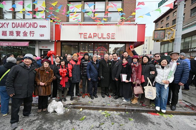 2026年1月3日上午11时30分,位于纽约市著名旅游地标、华埠心脏地带的167 Canal Street, New York, NY 10013,“Teapulse 悸動·唐人街第二店”在万众瞩目中盛大启幕。新店择址于人流如织的黄金地段,不仅象征品牌深耕社区的决心,更昭示其迈向更广阔舞台的雄心。开业当日,嘉宾云集,喜庆盈门,店前花篮簇拥,绵延数十米,五彩斑斓,辉映街衢,将整条街道装点成一片欢腾的海洋,成为华埠当日最引人注目的盛景之一。