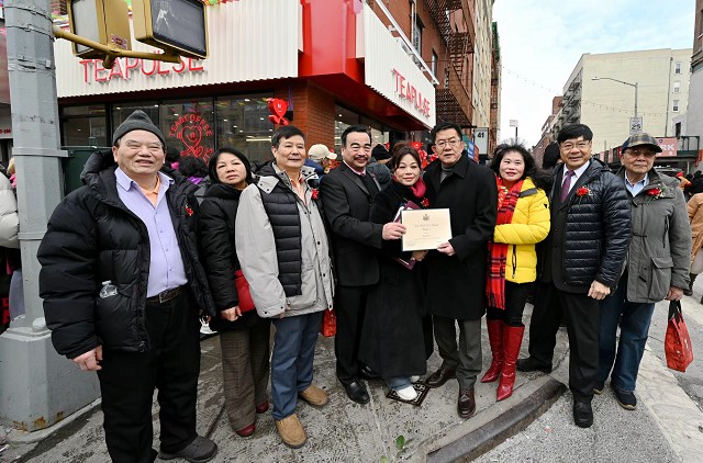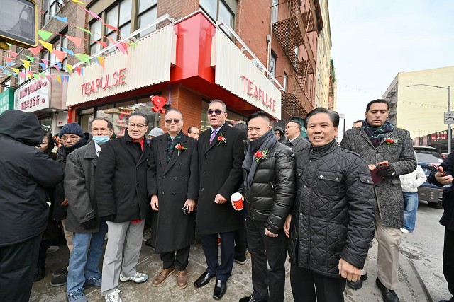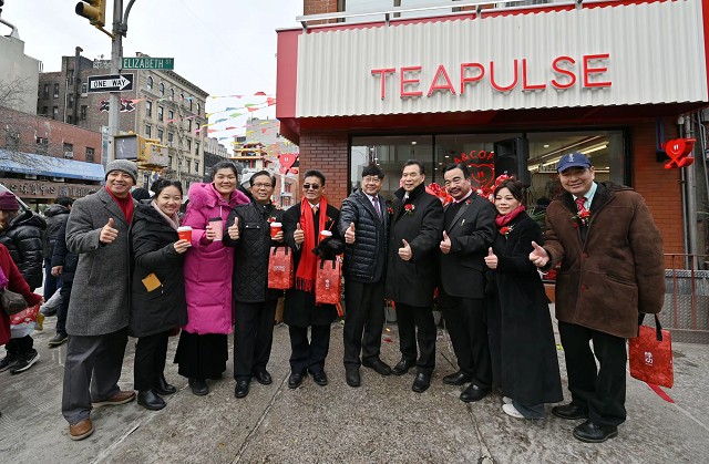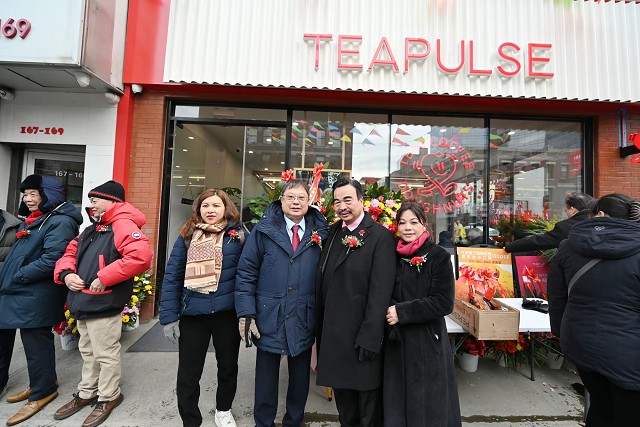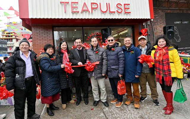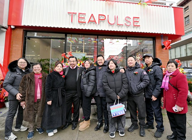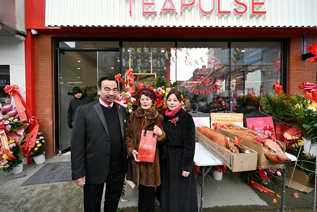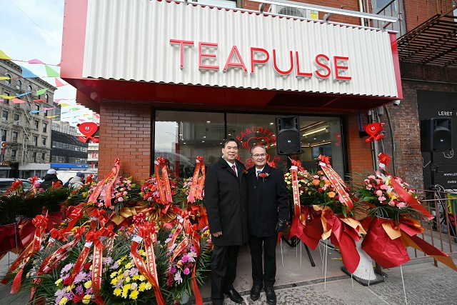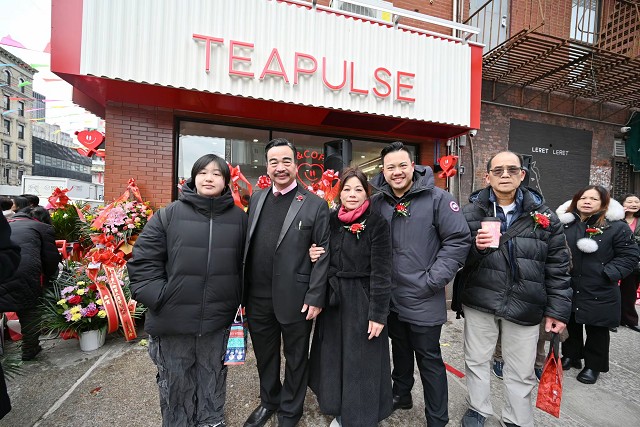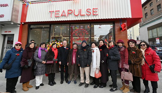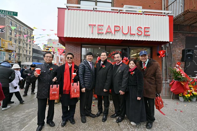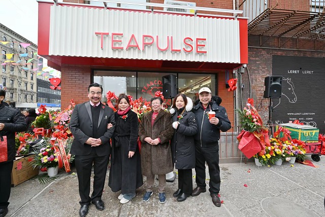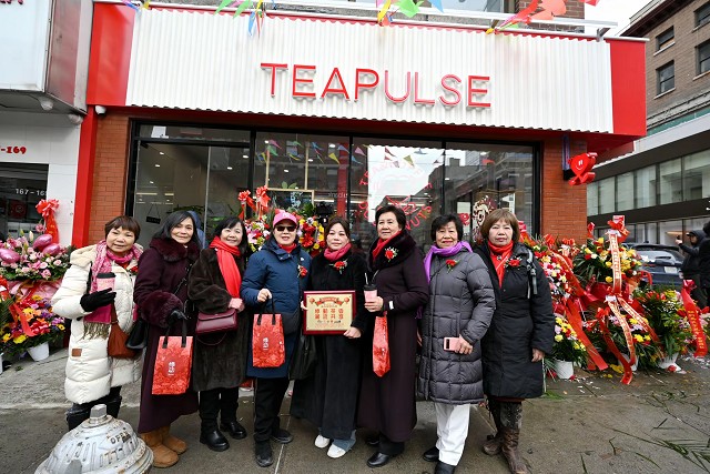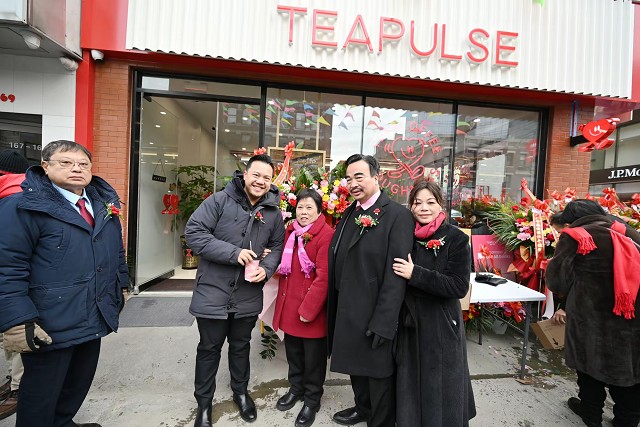 众位侨界领袖与政界要人亲临现场,共襄盛举,纽约州参议员陈学理、纽约州众议员郑永佳、纽约市议员马泰、庄文怡等嘉宾共同执剪,为新店剪彩,祝福Teapulse事业如春茶吐蕊,蒸蒸日上。梁仲礼董事长在致辞中深情表示,愿Teapulse如桂花般静默绽放,以恒久芬芳传递温暖与感动,让每一杯茶都成为连接人心的桥梁,在服务社区的同时,为纽约这座城市增添更多温情与色彩。